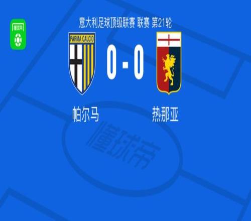 北京时间1月18日意大利足球顶级联赛 联赛 第21轮,帕尔马主场对阵热那亚。最终比分帕尔马 0