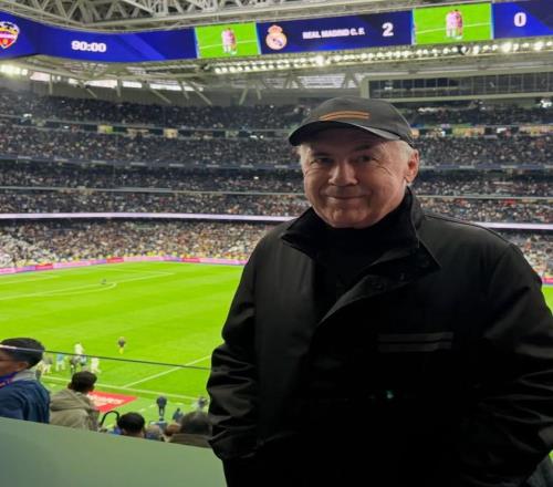 安切洛蒂回伯纳乌看球并社媒发文:看到皇马取胜真的很开心