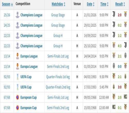 尤文图斯最近几年没少在本菲卡身上吃到苦头,几乎就在一年之前,在同一块场地上,双方打出了一个镜像比分,本菲卡从容地攻陷了安联球场,那时尤文主帅是蒂亚戈·莫塔。再往前数,2022年两家贡献了一场进球盛宴,可惜斑马军团仍是输家,比赛在第50分钟1比4的时候已失去悬念,尤文最后时刻连扳两球挽回了一点颜面,那个赛季,尤文在小组赛被本菲卡双杀,而那次带队的是二进宫的阿莱格里。